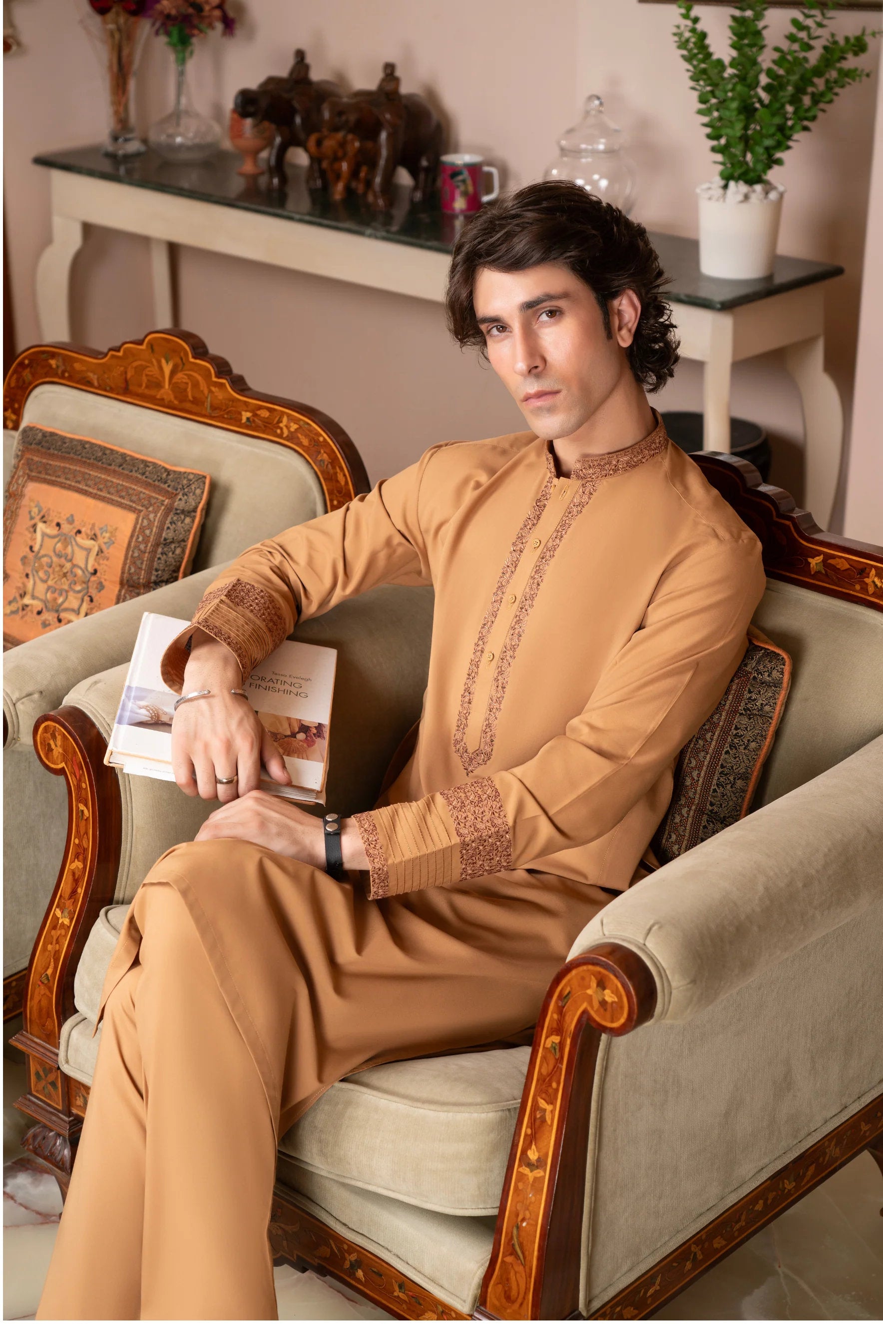 ✅ Elegant Embroidery – on front, sleeves & borders
