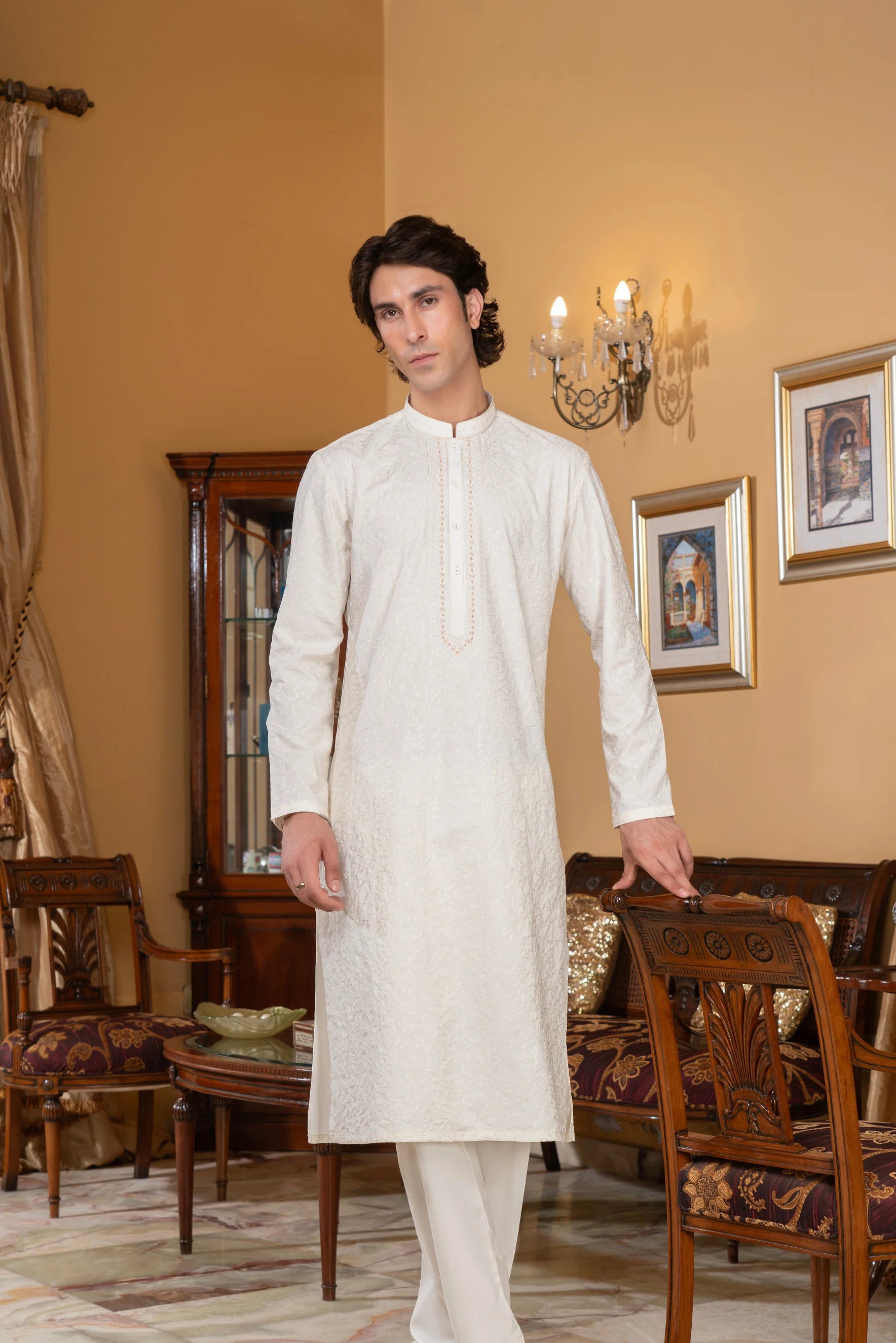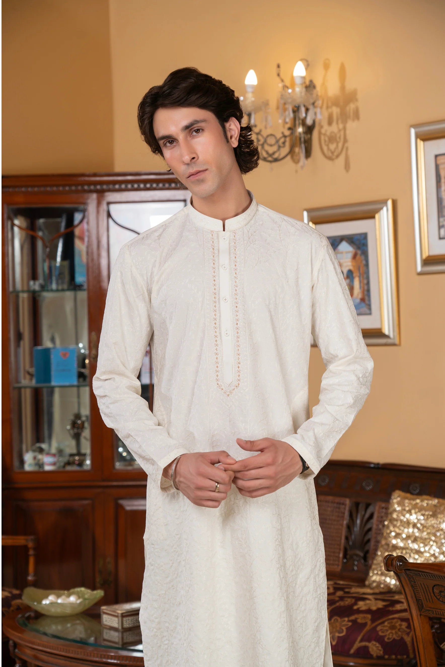 ✅ Elegant Embroidery – on front, sleeves & borders