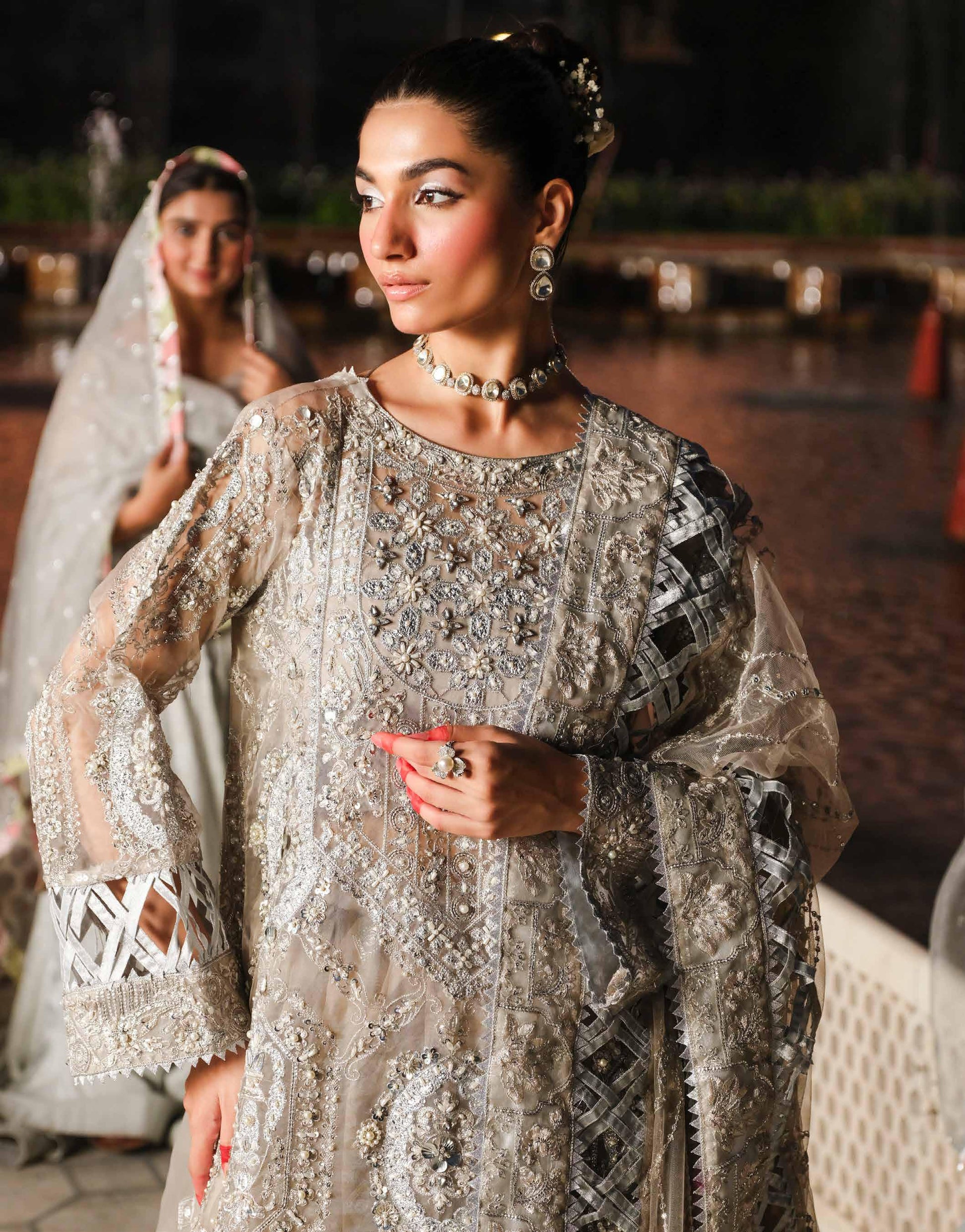 • Embroidered Organza Neckline With Fully Hand Embellished!