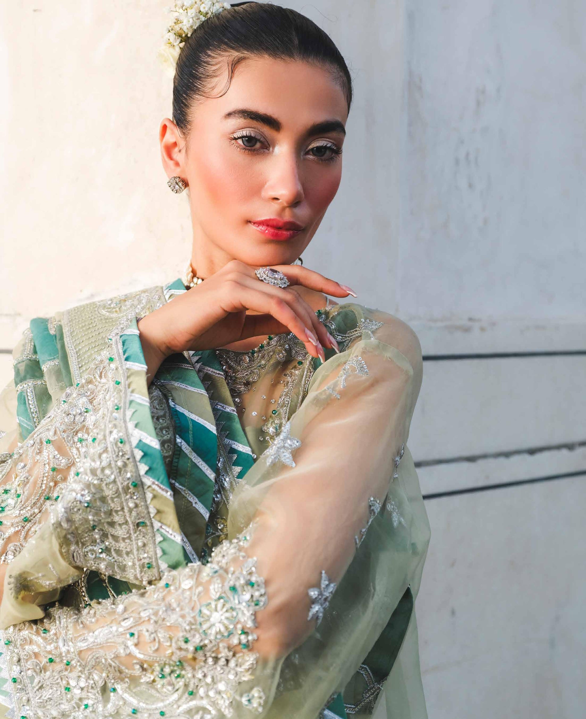 • Embroidered Sleeves On Organza With Full Hand Embellished!